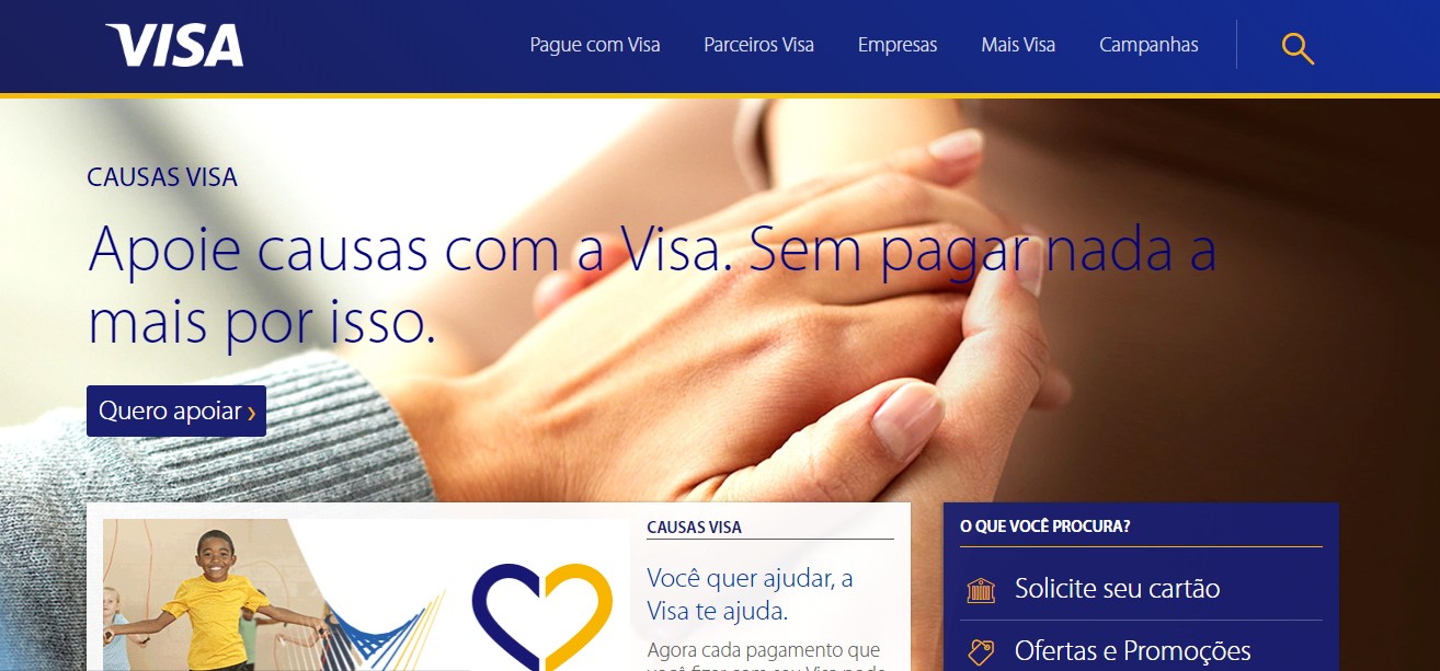 Já pensou que você pode ajudar uma causa humanitária em varias partes do nosso País? Pra isso a Visa está com um programa vigente, onde em cada compra que você realiza com seu cartão de crédito VISA, 1 CENTAVO é enviado a instituições com causas sociais como SAÚDE, EDUCAÇÃO, CRIANÇAS E ADOLESCENTES, IDOSOS ou ANIMAIS. … Ler mais