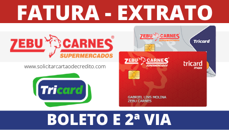 Imprima aqui a 2ª Via da Fatura do Cartão de Crédito Zebu Carnes Supermercados de forma simples. Veja como solicitar a 2ª via da fatura, consultar extrato, saldo e gerar boleto atualizado do Cartão Zebu Carnes Tricard.