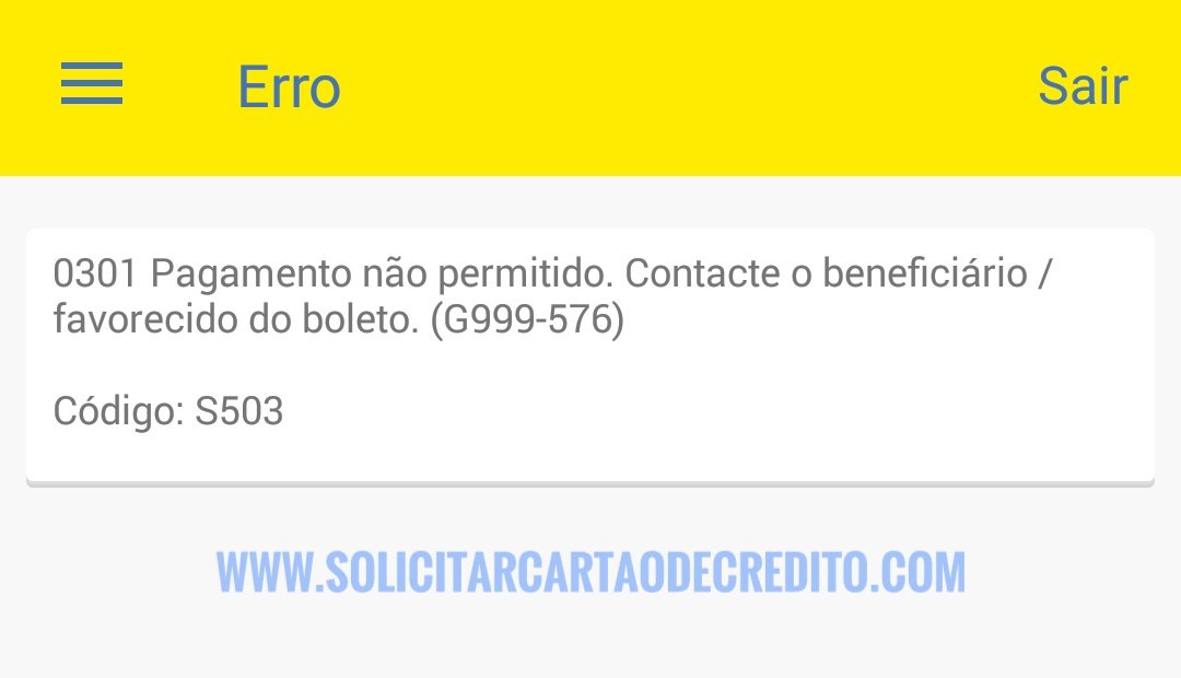 Erro 0301 ao pagar boleto registrado. G999-576.